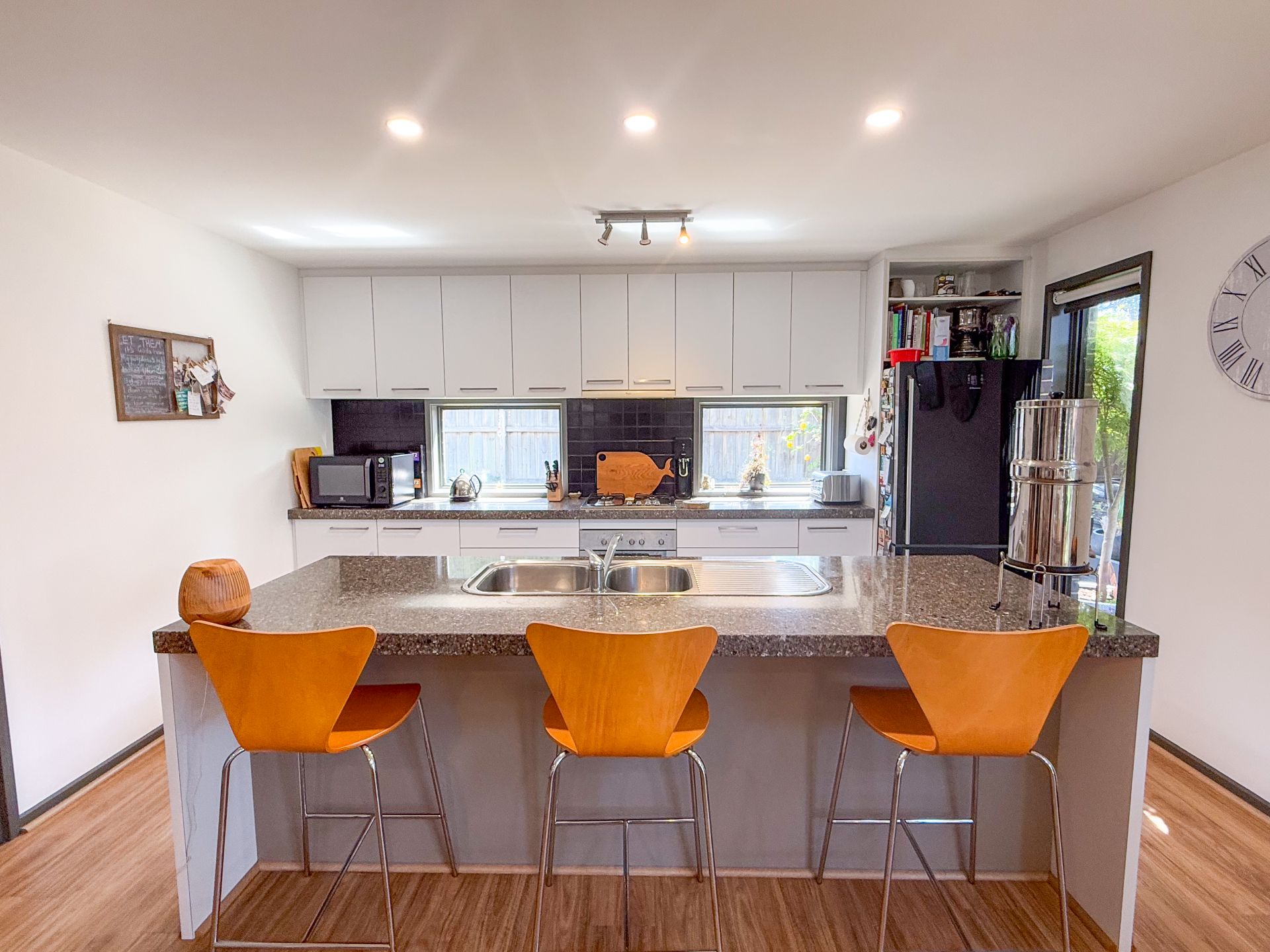 The open-plan kitchen, dining, and living area provides a welcoming space for everyday living, complemented by seamless flow to a superb outdoor entertaining area surrounded by established, easy-care gardens. With three well-proportioned bedrooms-two upstairs and one downstairs-plus bathrooms on both levels, the layout suits a range of lifestyles.