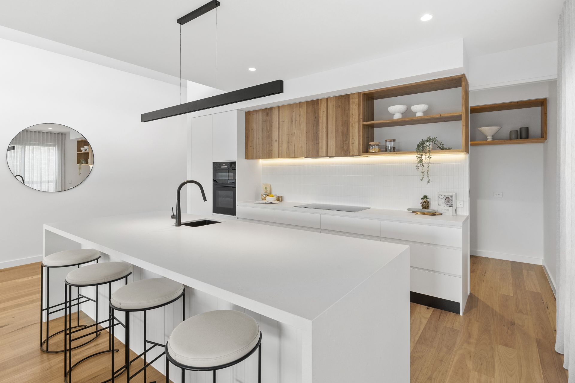 • The kitchen is an entertainer's dream boasting an expansive island bench and Blackbutt timber cabinetry.