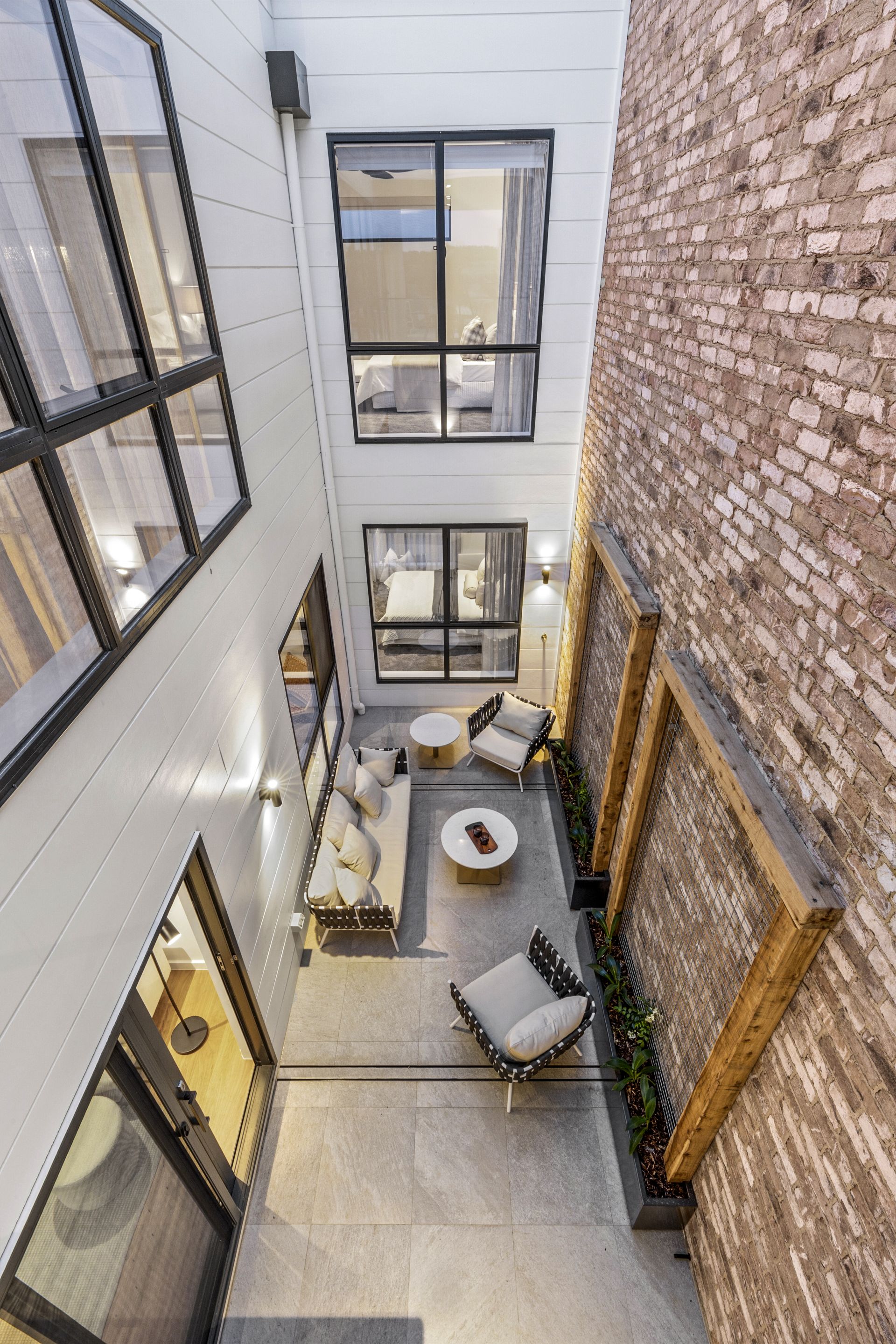• Private lightwell featuring the continuation of the recycled brick.