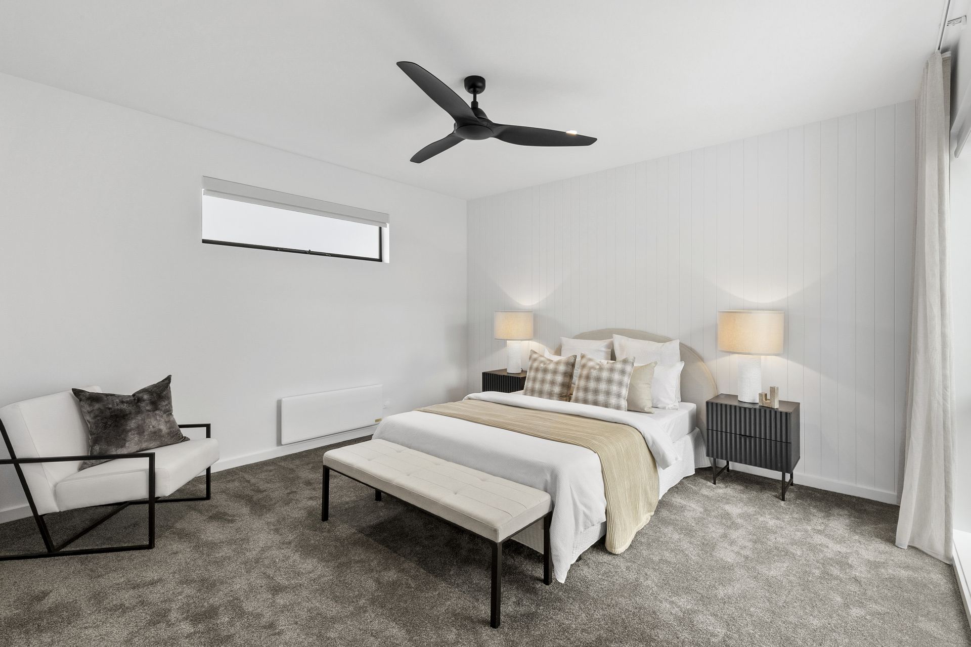 • Floor to ceiling sheer curtains and motorised block-out blinds throughout add ease and convenience.