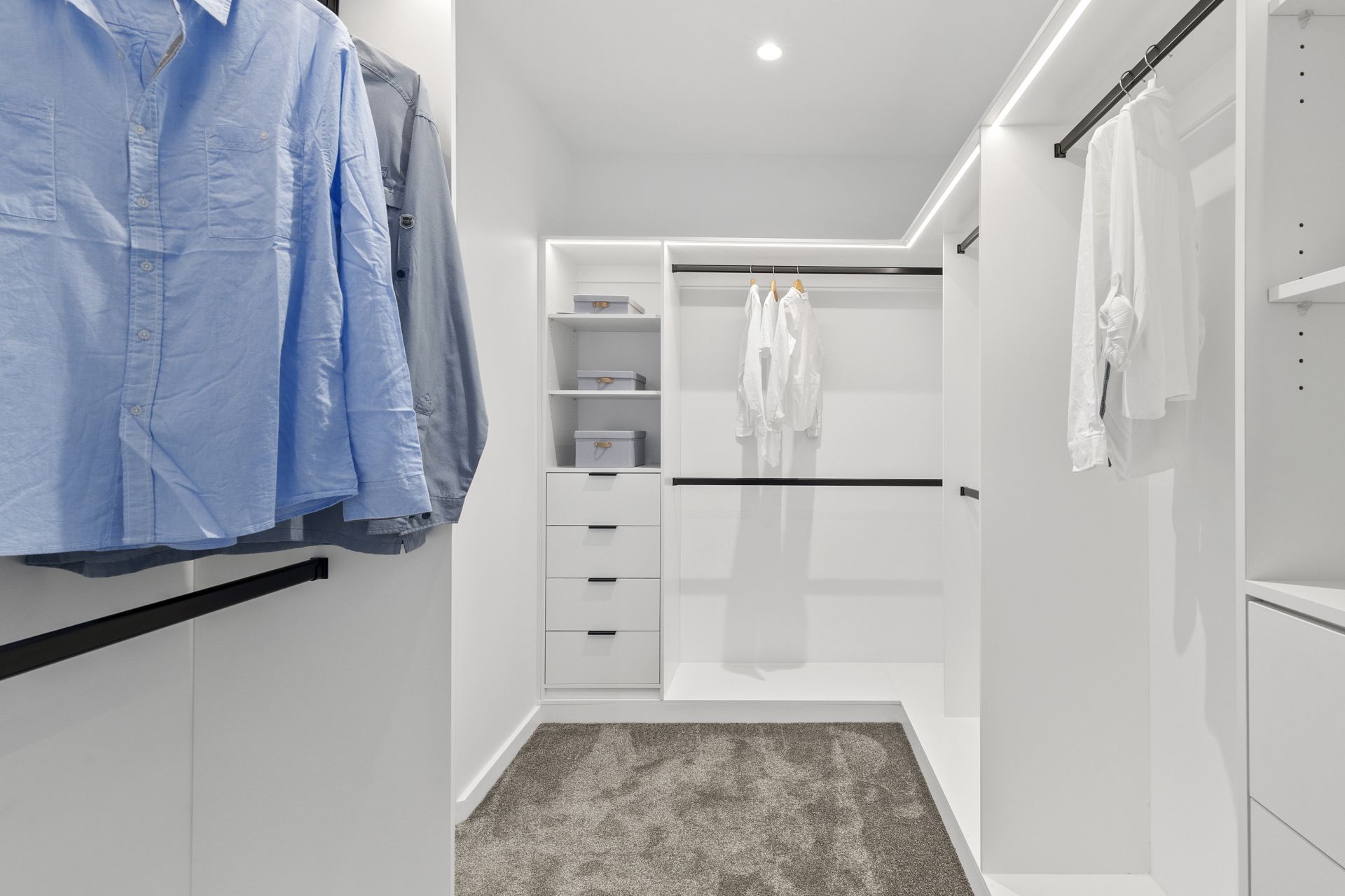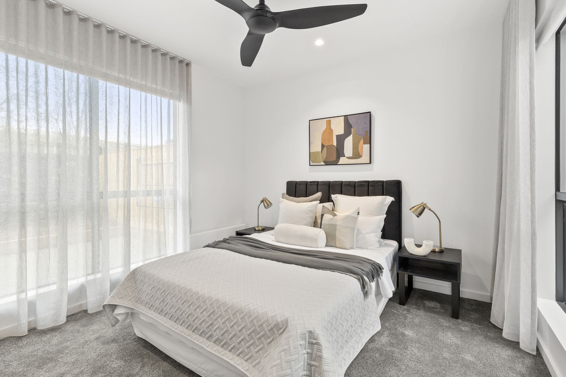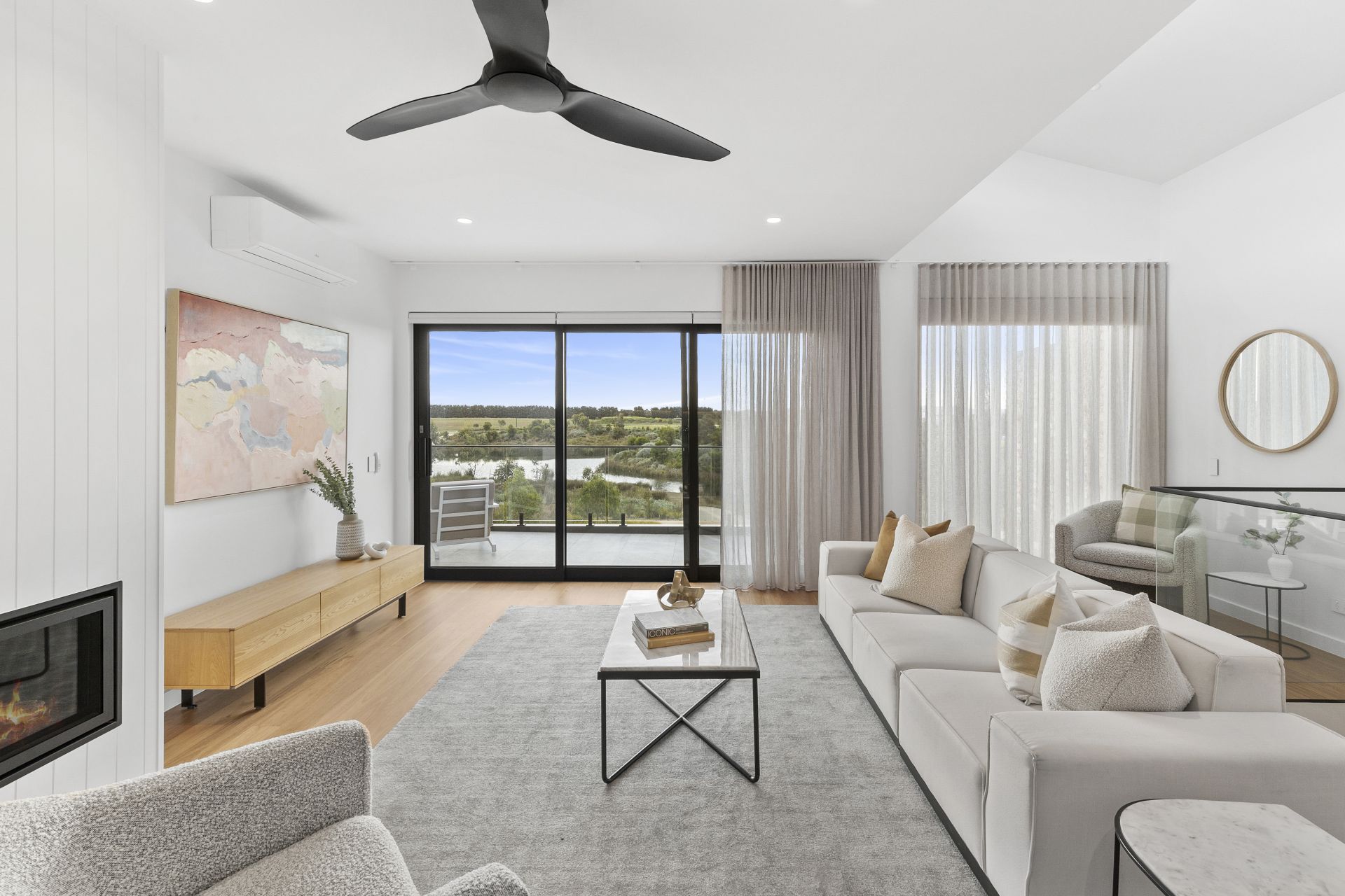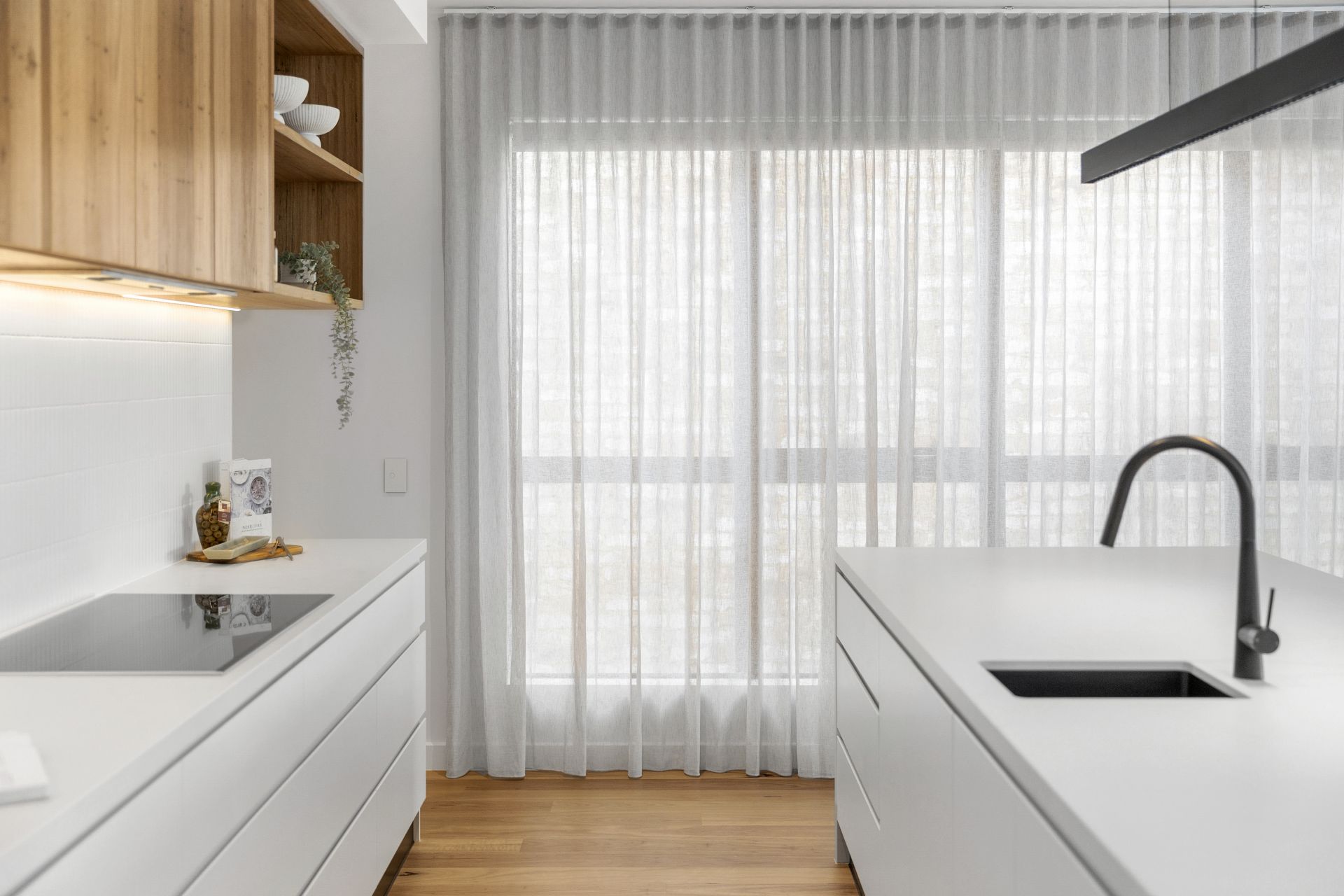 • Floor to ceiling sheer curtains and motorised block-out blinds throughout add ease and convenience.