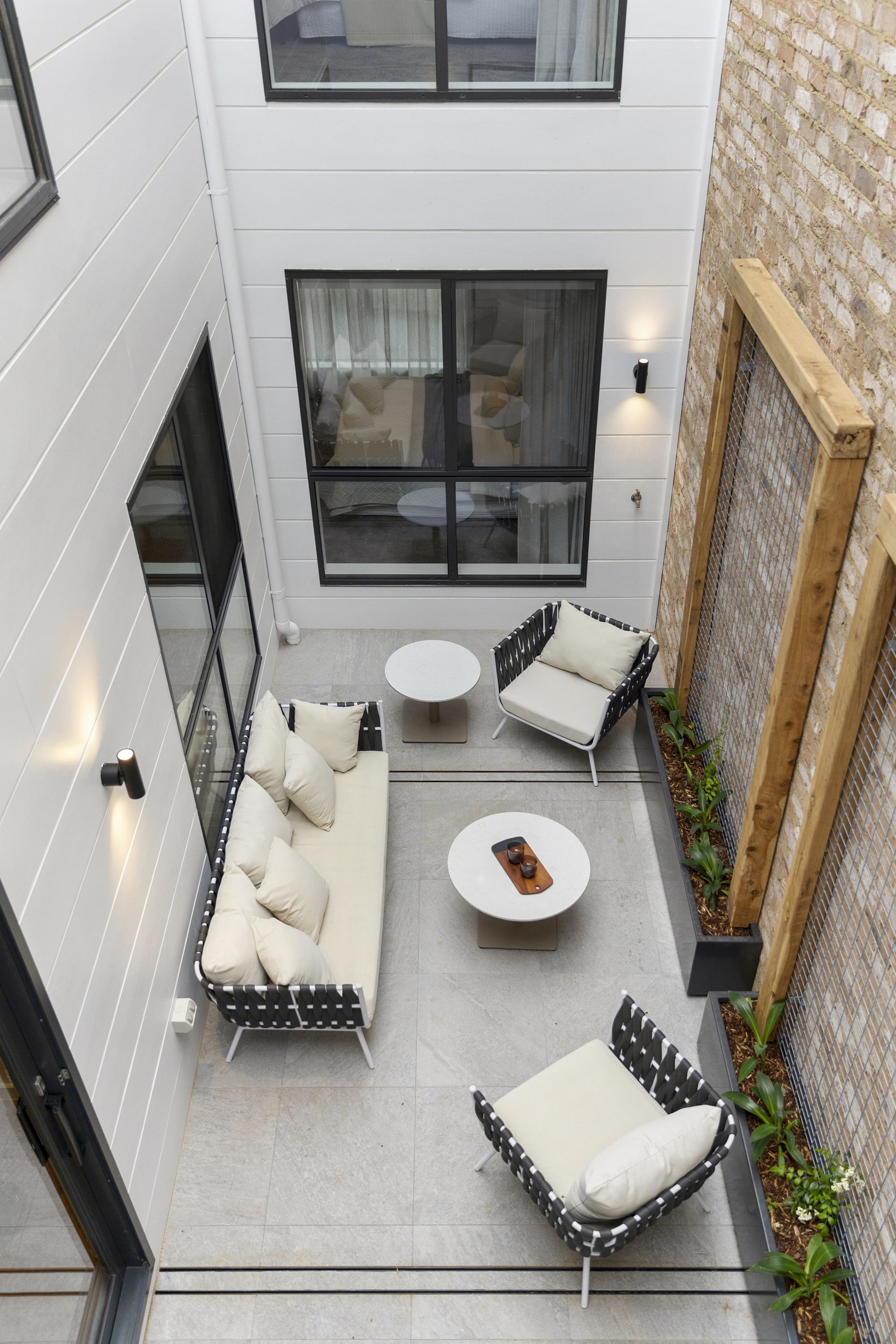 • Private lightwell featuring the continuation of the recycled brick.