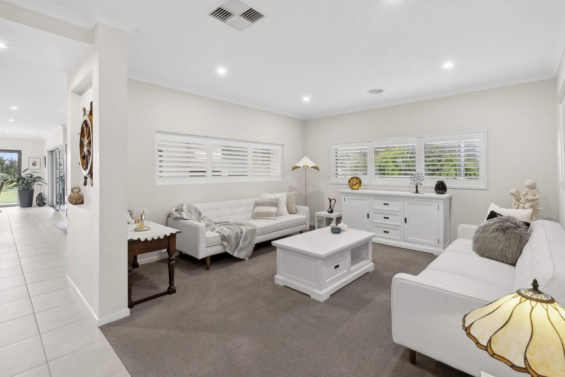 The backyard offers ample space for a luxurious inground swimming pool and pool house (STCA), additional sheds, vegetable and herb gardens, and further landscaping. The home includes a triple car garage with rear roller door access to an undercover carport, ideal for a trailer, boat, or caravan.