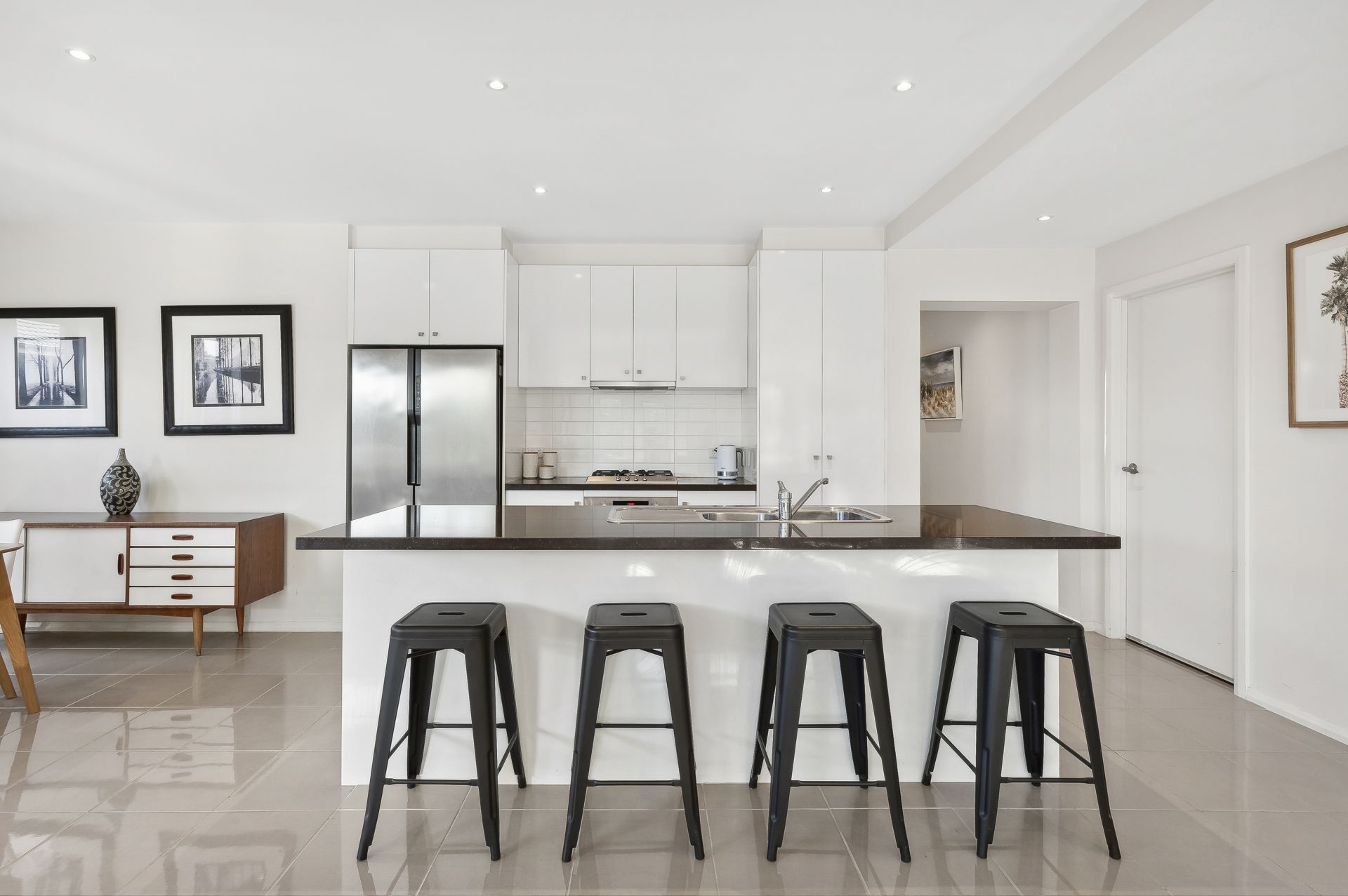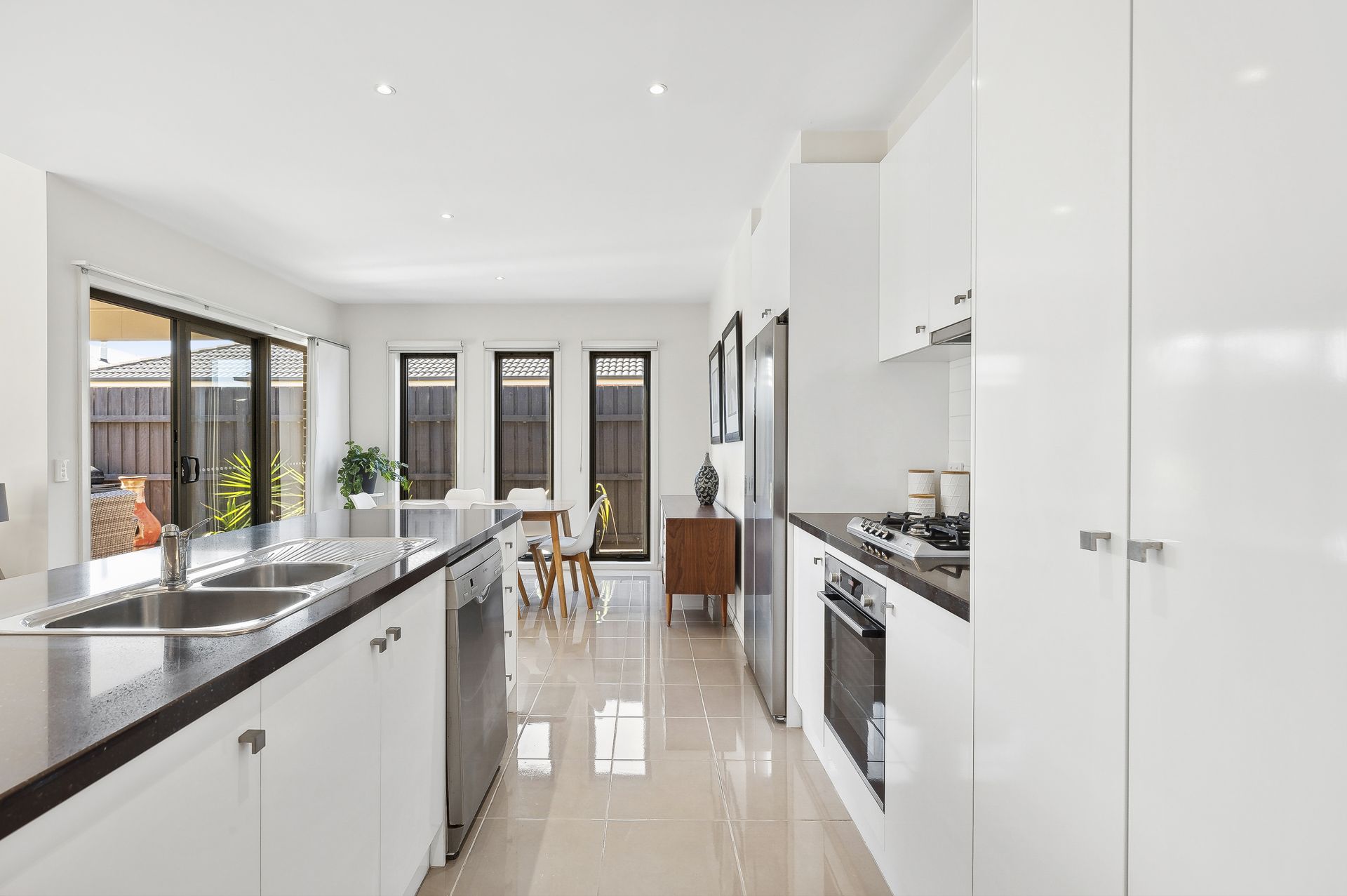 • Kitchen with stone benchtops and stainless steel appliances